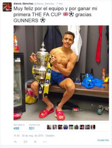 Los Gunners celebraron el título a través de Twitter e Instagram. El chileno es uno de los protagonistas</br><a title="Sevilla-Manchester United en vivo online: Champions League" href="https://chile.as.com/chile/2018/02/21/futbol/1519169716_810222.html">Sevilla-Manchester United en vivo online: Champions League</a>