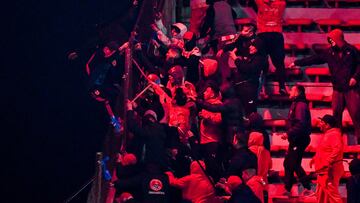 El escándalo entre Independiente y Universidad de Chile por Copa Sudamericana dejó varias imágenes lamentables. Sin embargo, la más dura fue la caída desde la tribuna del chileno Gonzalo Alfaro, quien era atacado por el público local. Ese video dio la vuelta al mundo.